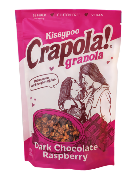 Kissypoo is the granola you will fall in love with! ❤️❤️❤️ You'll be surprised that such a rich and decadent flavor can be achieved with such simple and natural ingredients. This flavor is vegan, and made with virgin organic coconut oil. Freeze dried raspberries add little bursts of flavor to the dark chocolate landscape. So delish!